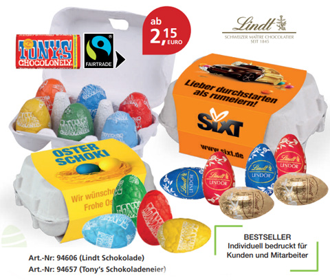 - Alle Artikel individuell bedruckbar mit Logo, Slogan oder Ostergruß
