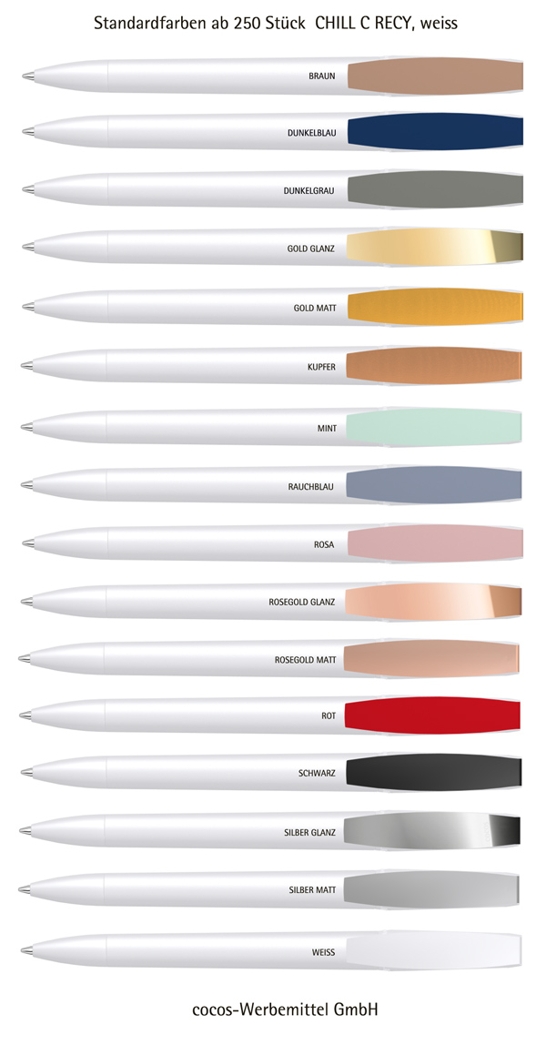 CHILL C RECY – Clip-Standardfarben im Shop ansehen (mit Preisen und Werbeanbringung)