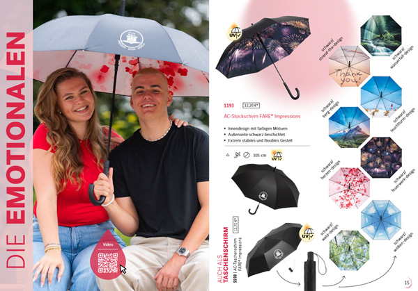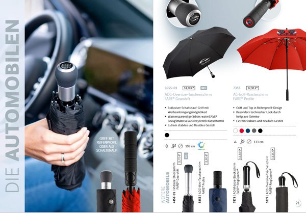 Wer einen Werbeartikel sucht, der praktisch, sichtbar und langlebig ist, trifft mit hochwertigen Regenschirmen eine überzeugende Wahl. In Kombination mit der Qualität und Innovationskraft von FARE® entsteht ein Werbeträger, der Marken zuverlässig begleitet – bei jedem Wetter.