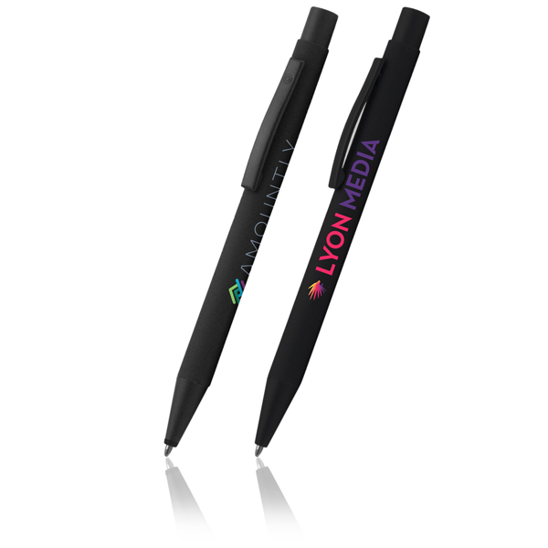 Nutzen Sie diesen eleganten schwarzen Kugelschreiber, um Ihre Marke sichtbar und greifbar zu machen. Gerne beraten wir Sie zu Staffelpreisen, Veredelungsmöglichkeiten, Lagerständen und aktuelle Lieferzeiten.